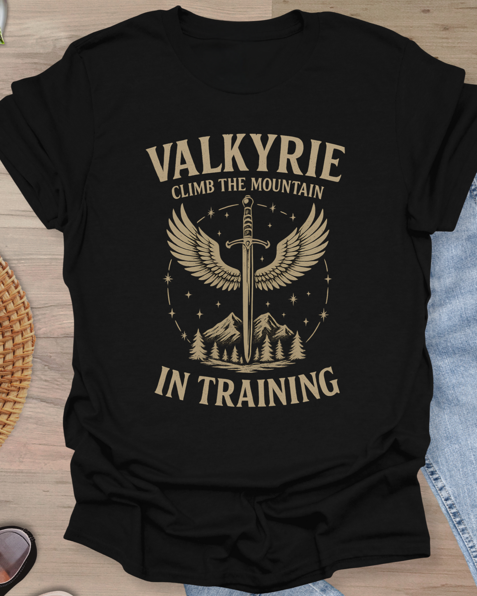 Unleash your inner warrior with our Valkyrie In Training T-shirt! This shirt is perfect for any fan looking to join the ranks of the fierce Valkyries.